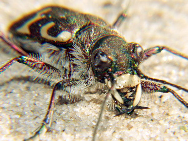 Die Feld-Sandlaufkäfer kommen europaweit, besonders auf sandigen Böden vor. Sie leben räuberisch und ernähren sich von Insekten oder anderem Kleingetier. Die Larven graben bis zu einhalb Meter lange Röhren, darin lauern sie auf Beute. Mit ihren kräftigen Kiefern greifen sie die erbeuteten Tiere und ziehen sie bis zum Ende der Röhre. Hier saugen sie die Beute aus, der Rest wird dann hinausgeworfen.