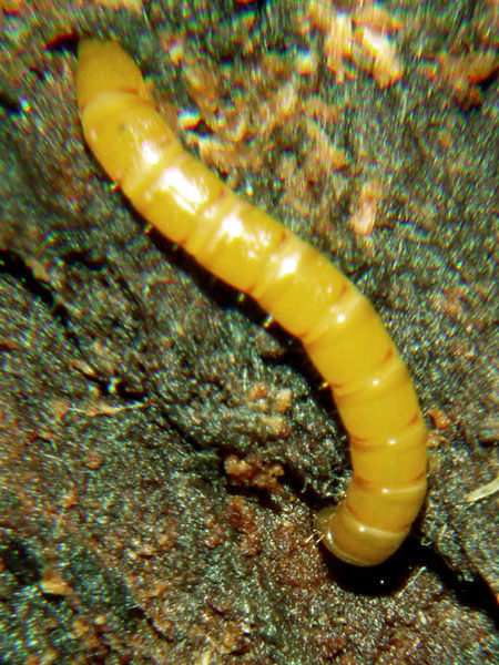 Carabus Larve in Moderholz. Gesehen in Moderholz am 22.11.2007 bei Langenberg/NRW.