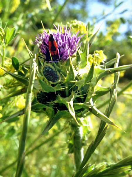 Bockkäfer auf Distel. Gesehen Süd Frankreich, Provence Anfang Juni 2006.