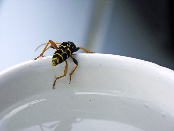 Widderbock-Käfer am Wasserbecher. Es gibt ähnlich gemusterte Käfer. Dieser kam am Abend eines heißen Tages um aus meinem Becher zu trinken. Gesehen Süd Frankreich, Provence 28.05.2006.