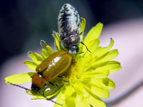 Acmaeodera pilosellae (hinten), gesehen am 9. Mai 2007 bei Oppedette in Süd-Frankreich.