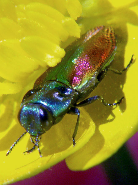 Sehr farbenprächtiger, schillernder Käfer. Gesehen am 5. Mai 2007 bei Oppedette in Süd-Frankreich.