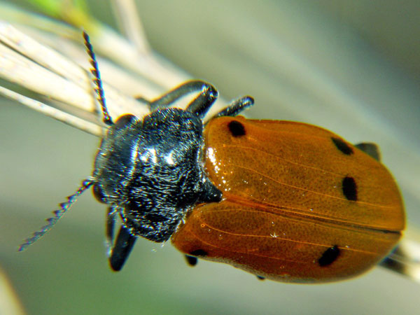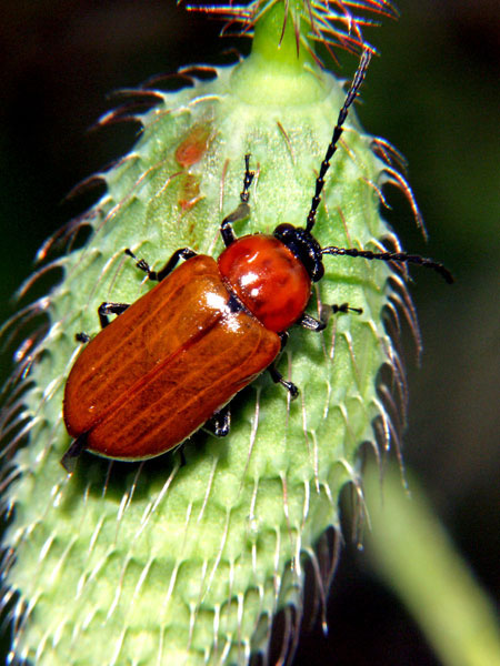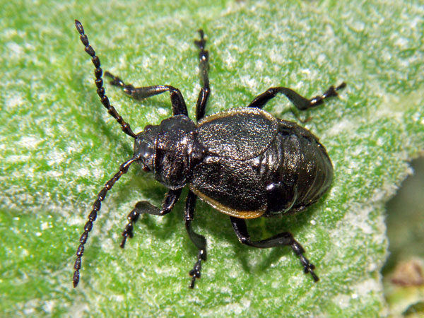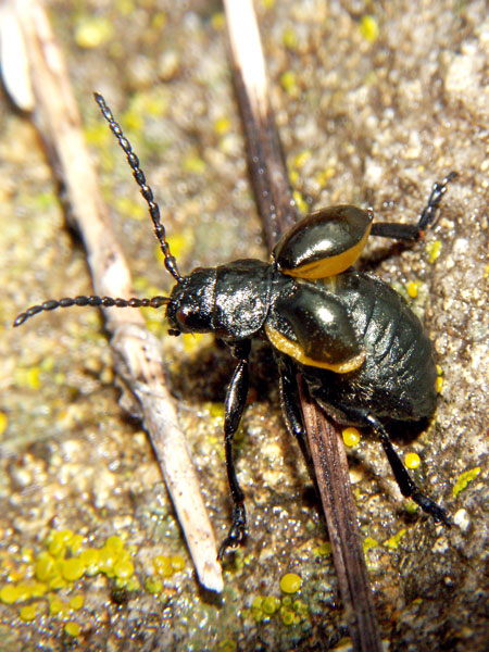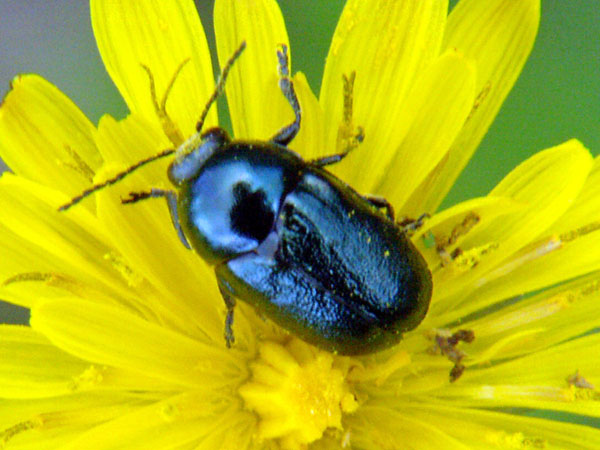 Ausgesprochen dickköpfiger Blattkäfer mit Kurzflügel, liebt gelbblühende Asteraceaen. Gesehen am 30. April 2007 bei Besancon / Frankreich.