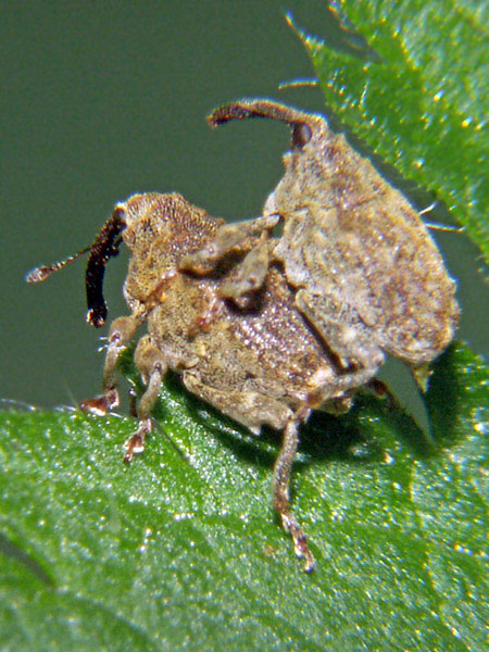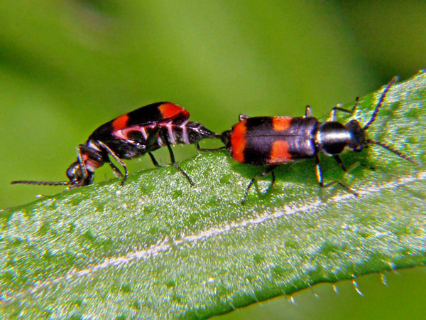 Im Frühjahr 2010 sah ich diese kleinen, etwa 5 mm groß Käfer öfters, aber sie sind sehr flink, (sehr schlecht für Fotografen); diese Käfer waren offensichtlich abgelenkt, somit gelang mir diese Aufnahme.