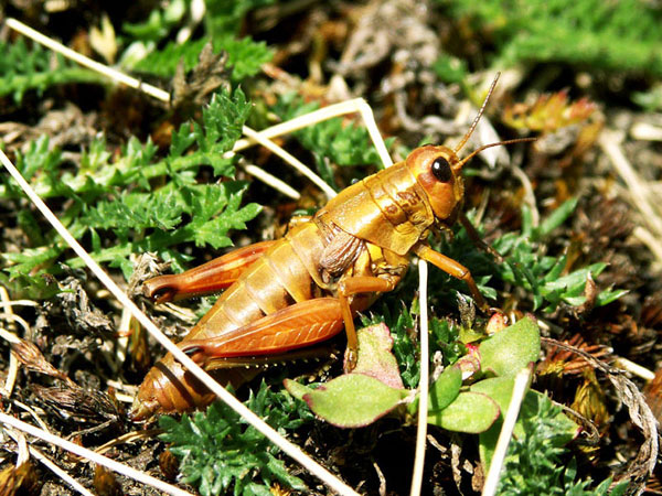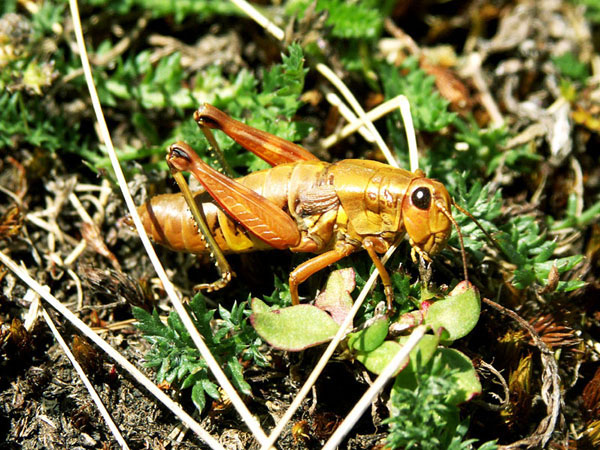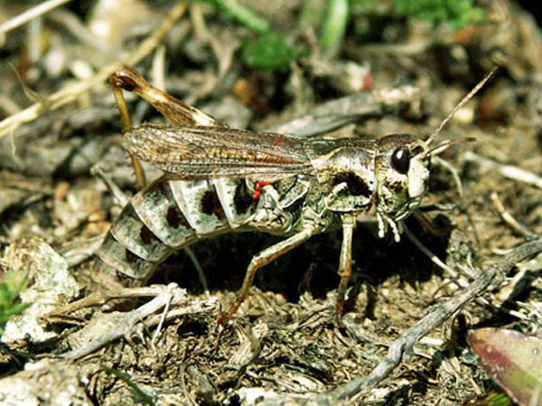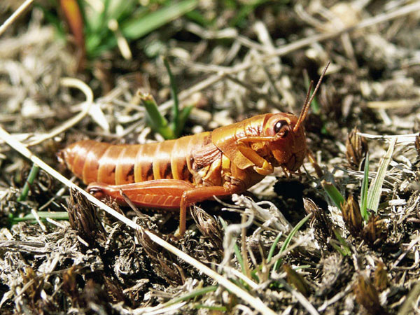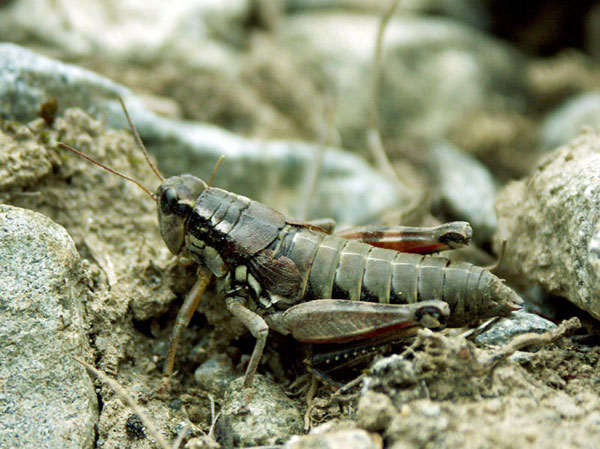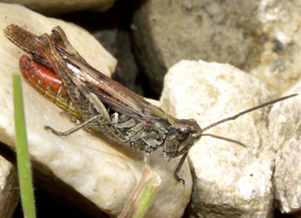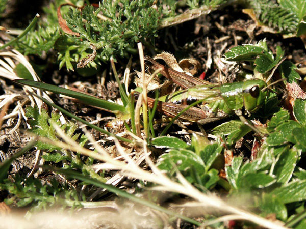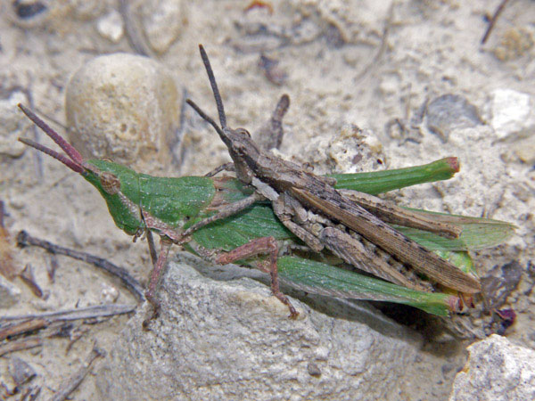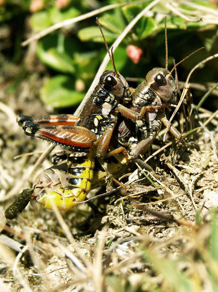 Weitere Bilder von Gebirgsschrecken in »normaler« Färbung und bei der Paarung.