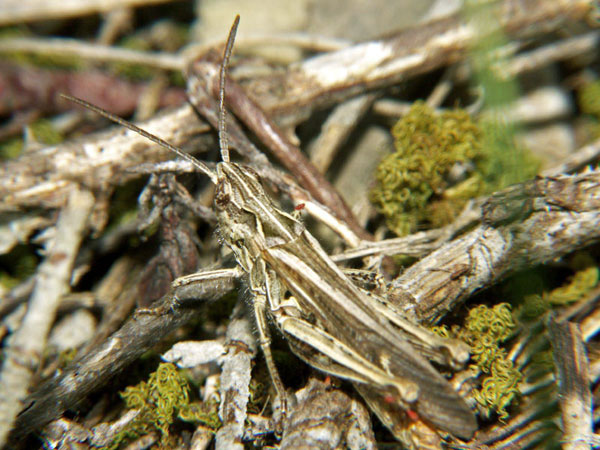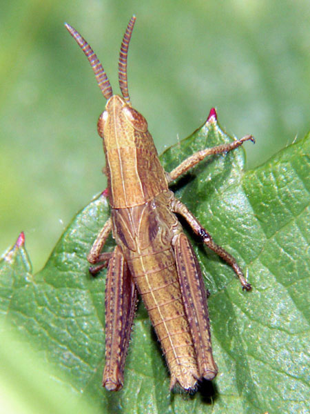 Familie Acrididae, Unterfamilie: Gomphocerinae, Grashüpfer.