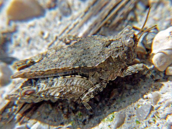 Nur 5o cm neben Tetrix ceperoi saß eine Gemeine Dornschrecke, sie ist auch nicht viel gößer als Tetrix ceperoi. Gesehen am 15.03.2008 am Stadtrand von Essen/NRW, Industriebrachfläche.
