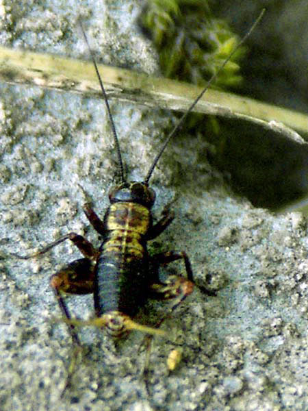Familie der Grillen, Gryllidae. Gattung: Neombius. Süd-Frankreich Juni 2006.