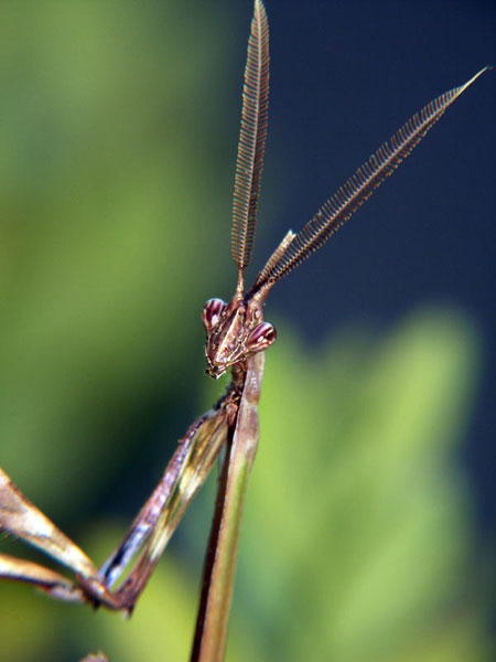 Die Hauben-Fangschrecke war ausgesprochen neugierig. Sie ließ sich durch die Photographin überhaupt nicht stören. Die männlichen Tiere haben Flügel, wahrscheinlich damit sie die flügellosen Weibchen besser erreichen.
