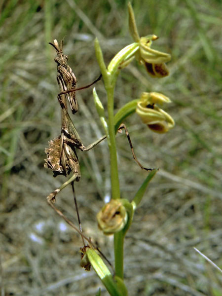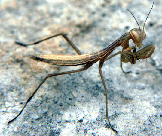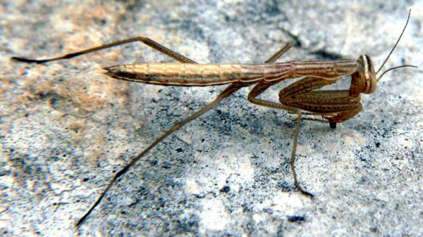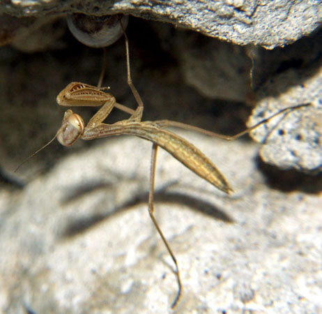 Erwachsenes, noch nicht geschlechtsreifes Weibchen, subadult, etwa 25 mm groß. Gesehen im Mai 2004 bei Oppedette. Noch eine Häutung und das Tier ist ausgewachsen. Nach der letzten Häutung legt die Fangschrecke ihre Eier und verstirbt. Dieses Raubinsekt verspeist auch gelegentlich den Liebhaber während des Liebesspieles. Eine ähnliche Gottesanbeterin zeichnete M.C. Escher.