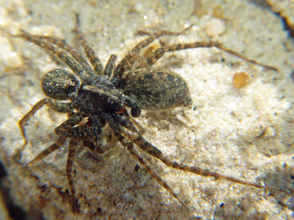 Am Calavon bei Oppedette, Süd-Frankreich huschten viele dieser Wolfsspinnen herum.